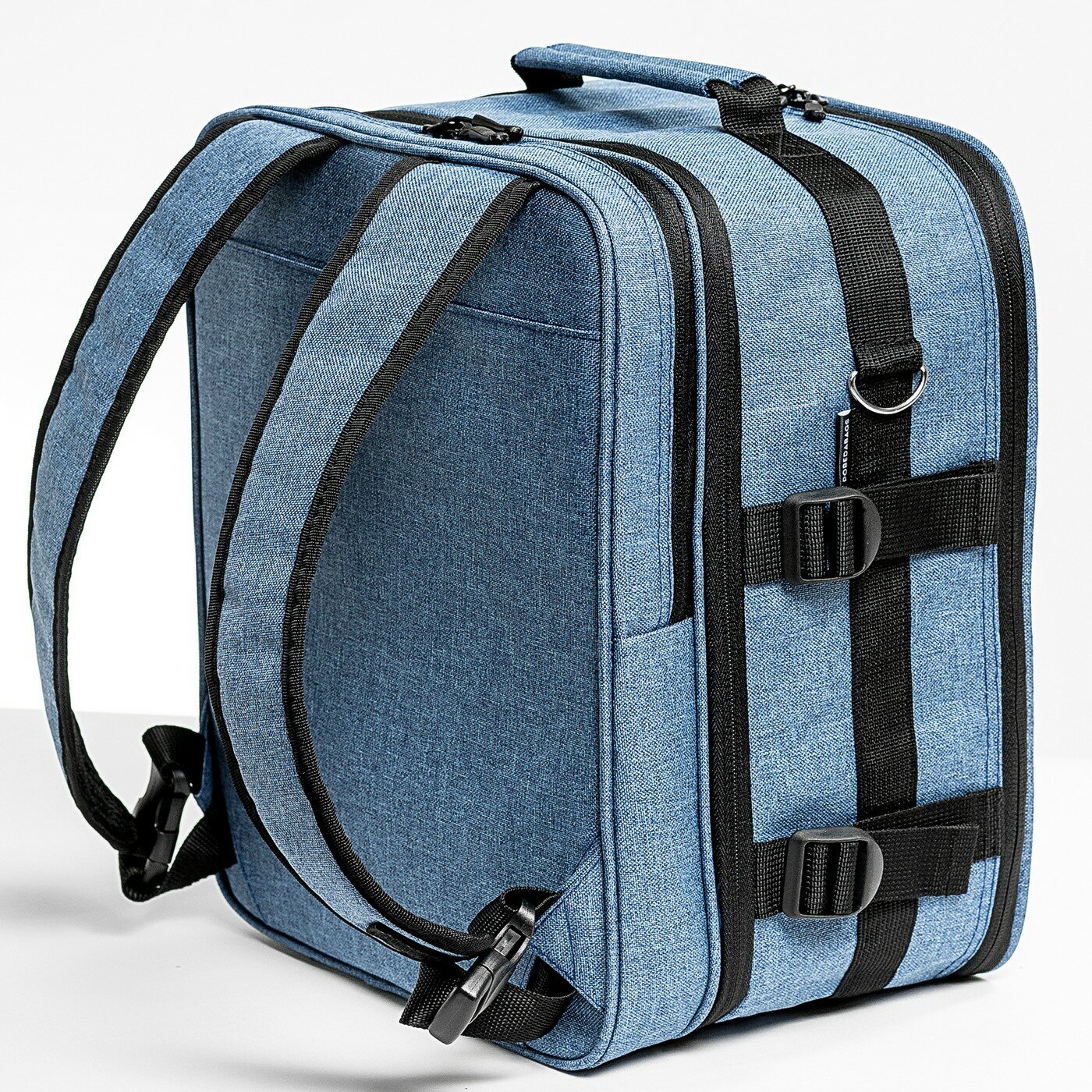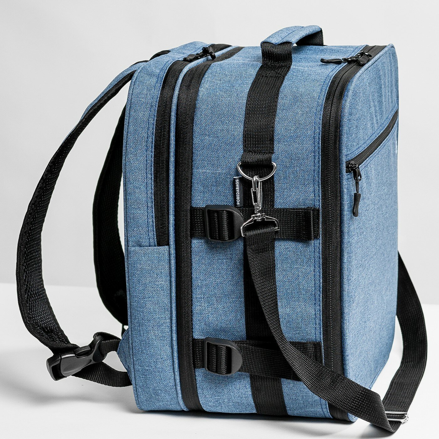 Соответствует правилам провоза бесплатной ручной клади авиакомпании "Победа", уверенно проходит калибраторы 36х30х27 см. Глубину рюкзака можно уменьшить на 7 см для комфортного использования между перелётами.