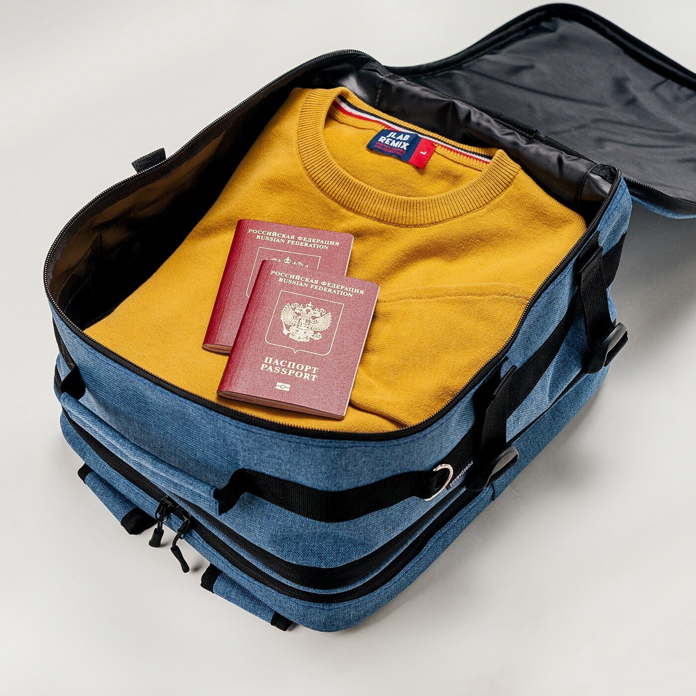 Плотная водоотталкивающая ткань защитит ваши вещи от влаги, станет преградой истиранию, загрязнению и другим внешним воздействиям. Вариативность размера обеспечит удобство в путешествии, позволит использовать рюкзак и в полётах "Победой", и в повседневной жизни. Рюкзак компактно складывается, практически не занимает места между перелётами.