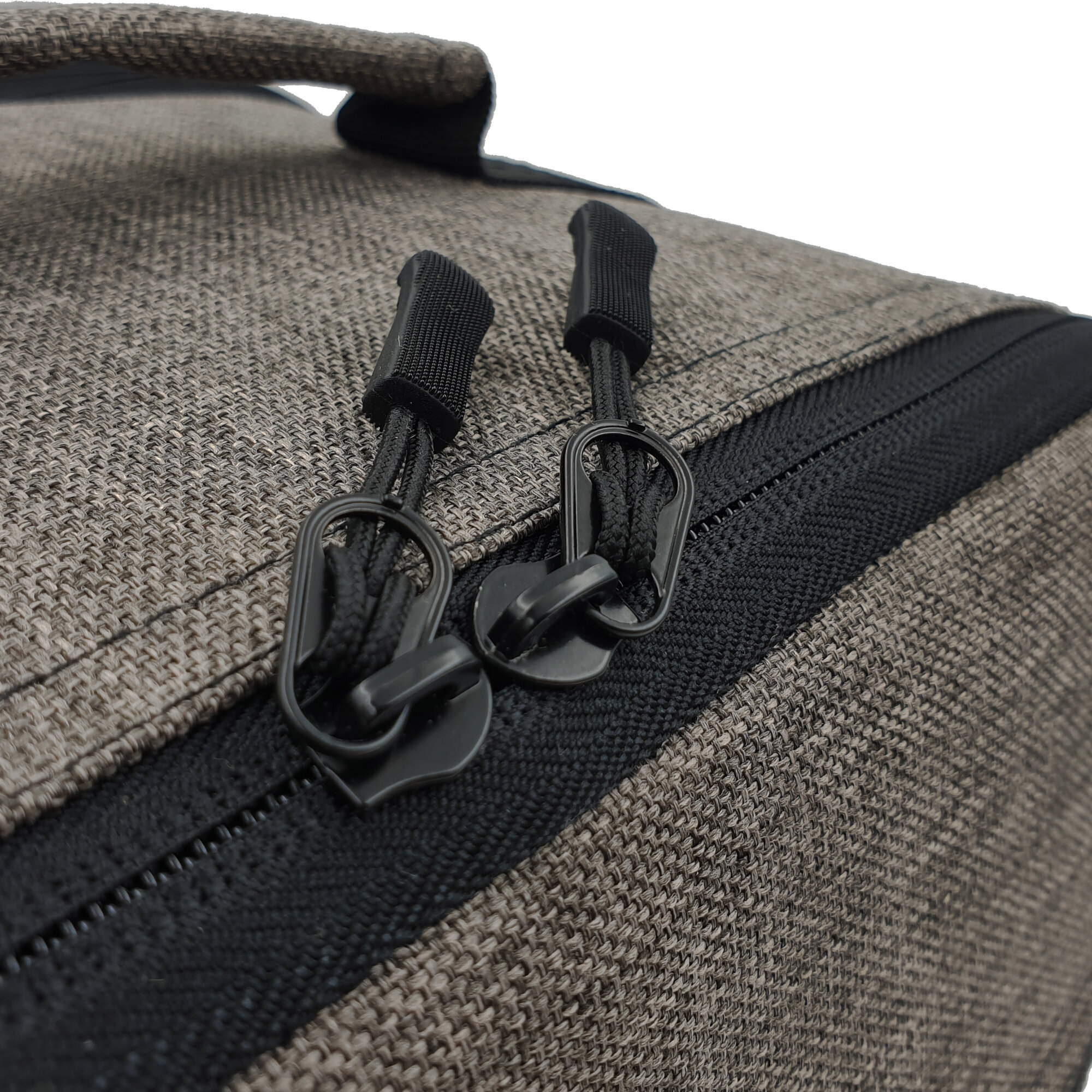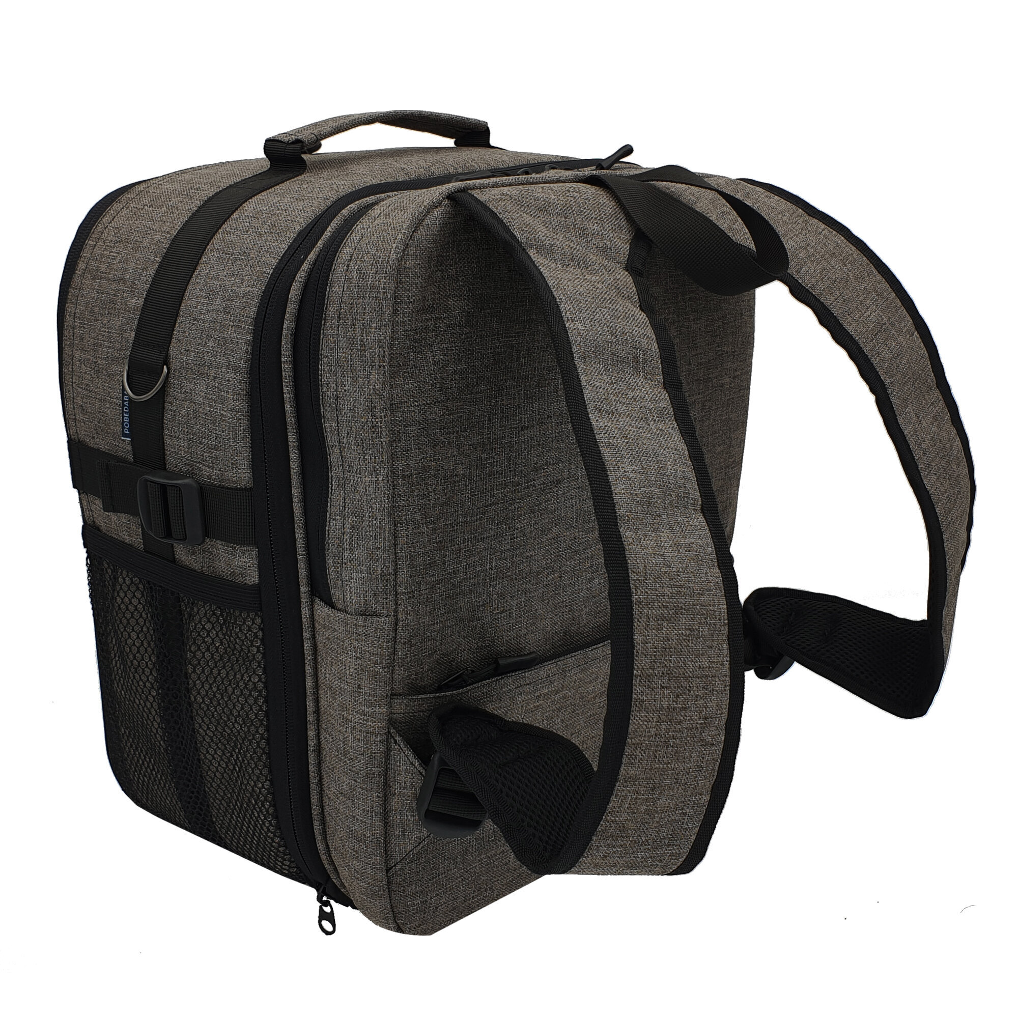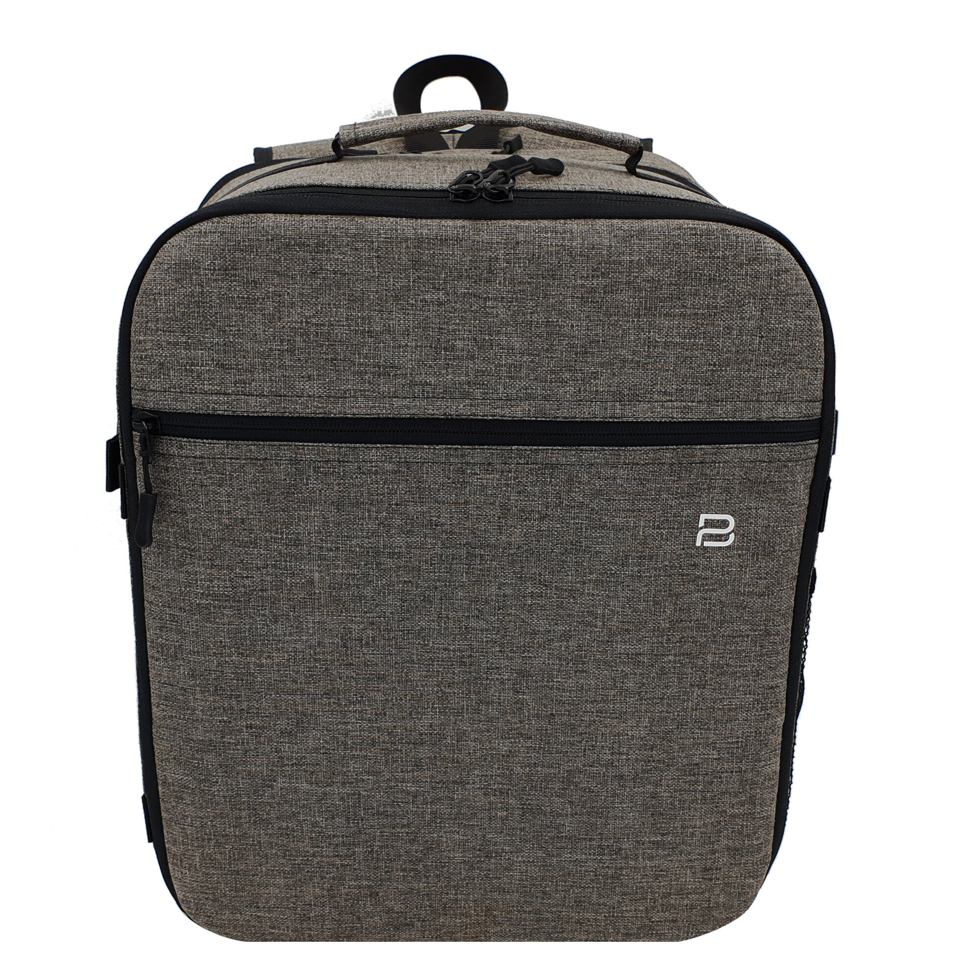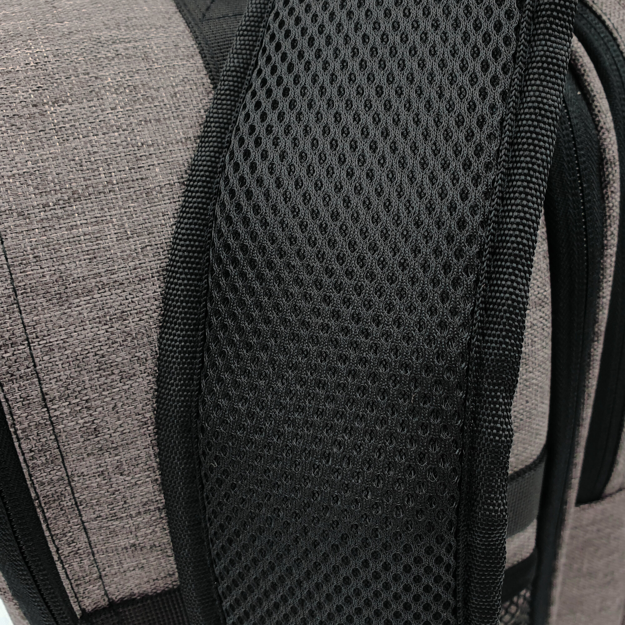 Глубина рюкзака уменьшается круговой молнией до 20см для комфортного использования между перелетами. Есть внешний карман, закрывающийся на молнию, отделение для ноутбука до 15" и дополнительный внутренний карман.